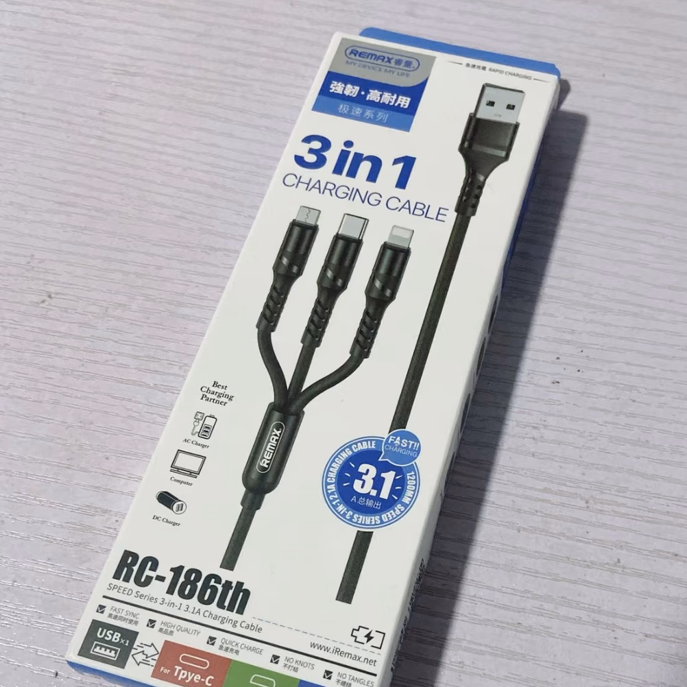 Remax 3-in-1 Fast Charging Cable, One Cable for Three Devices, Universal for Phones